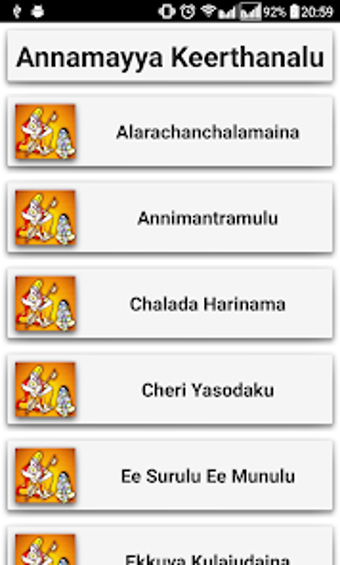 Além de sua vasta biblioteca musical, o Annamayya Keerthanalu proporciona uma interface amigável, facilitando a navegação entre as canções. Os usuários podem explorar títulos como "Mangaambudi Hanumantha" e "Twamevasharanam", promovendo uma experiência de audição imersiva. Este aplicativo é ideal para aqueles que buscam enriquecer sua espiritualidade através da música, tornando-se uma ferramenta valiosa para a prática devocional.